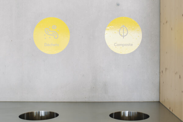 Notre intervention a porté sur la création du concept graphique, le choix des teintes en lien avec les matériaux des nouveaux bâtiments, ainsi que le suivi du projet jusqu’à la pose sur site. Une signalétique basée sur la fonte Digloo, pensée pour s’intégrer harmonieusement à l’architecture tout en facilitant l’orientation des usagers.